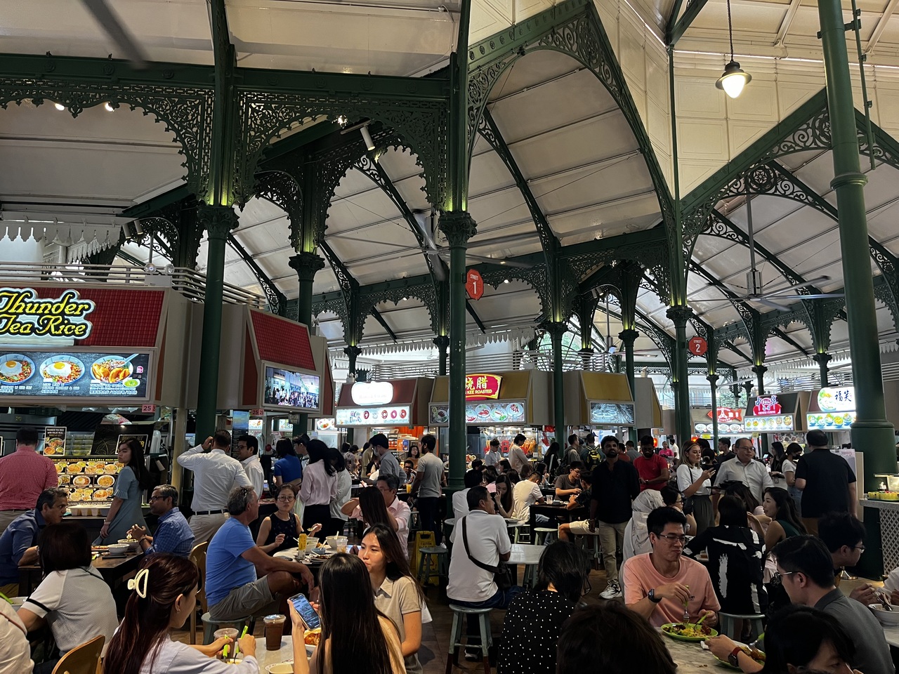 チキンライスはにんにくが効いていて美味しかったです。中は暑いので飲み物も忘れずに。飲み物は飲み物専門のお店で頼まなきゃいけないので面倒でした。- 旅行時期