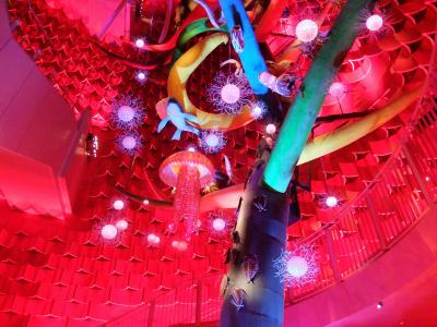 1階部分の<地底の太陽>ゾーンと<生命の樹>ゾーンは写真撮影可(フラッシュは禁止)ですが、カメラやスマホを落とすと大変危険なので<生命の樹>ゾーンの階段を上がるところから撮影禁止になっていました。- 旅行時期