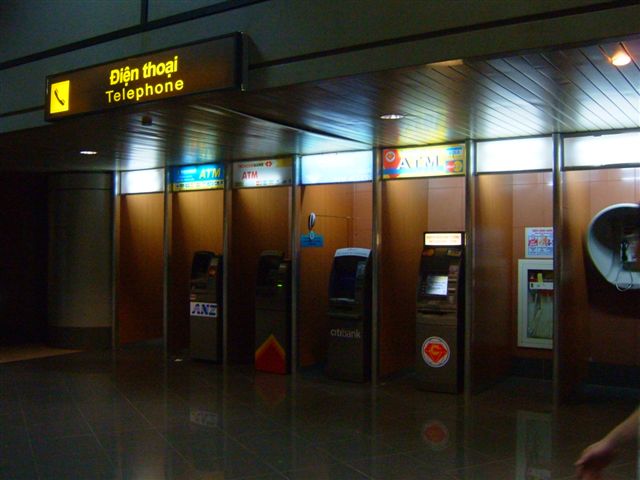 ※写真はノイバイ空港国際線到着ロビーにあるカフェテリア脇のATM群。頭上TELEPHONEの表示が目印- 旅行時期