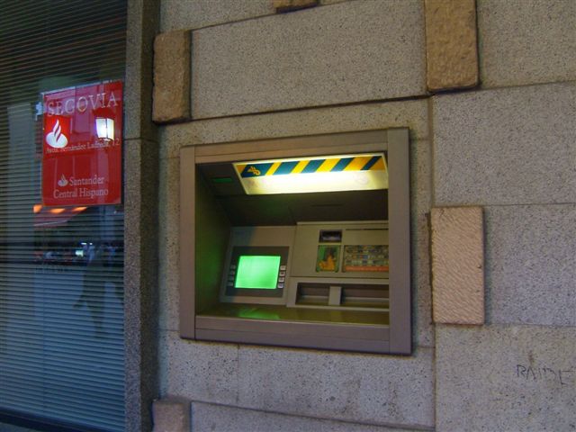 新市街から水道橋に向かうAvenida de Fernandez Ladreda沿いにドイチェバンク他いくつかの銀行が有る。ATMは通りに面しており24時間営業。- 旅行時期