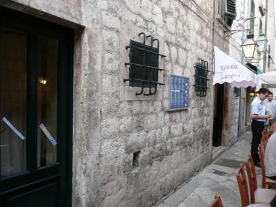 ドブロブニークの旧市街の小さな路地に有る食堂です。ダルマチア地方には基本的に魚介類を出すレストランは数多く有るのですが、以外と代表的なメニューであるブローデットを出すレストランが少なく、ここはこういった代表的なメニューを手ごろな価格で用意しています。夏は路地沿いに所狭しと隣のレストランと一緒にテーブルを並べています。