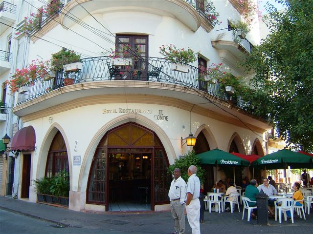 サントドミンゴのコロニアル市街で朝早くから営業しているカフェテリア。エルコンデホテルと一緒になっている。天気の良い時はパルケ・コロンにもテーブルを並べており朝日の中で涼しい風に吹かれながら朝食をとれる。