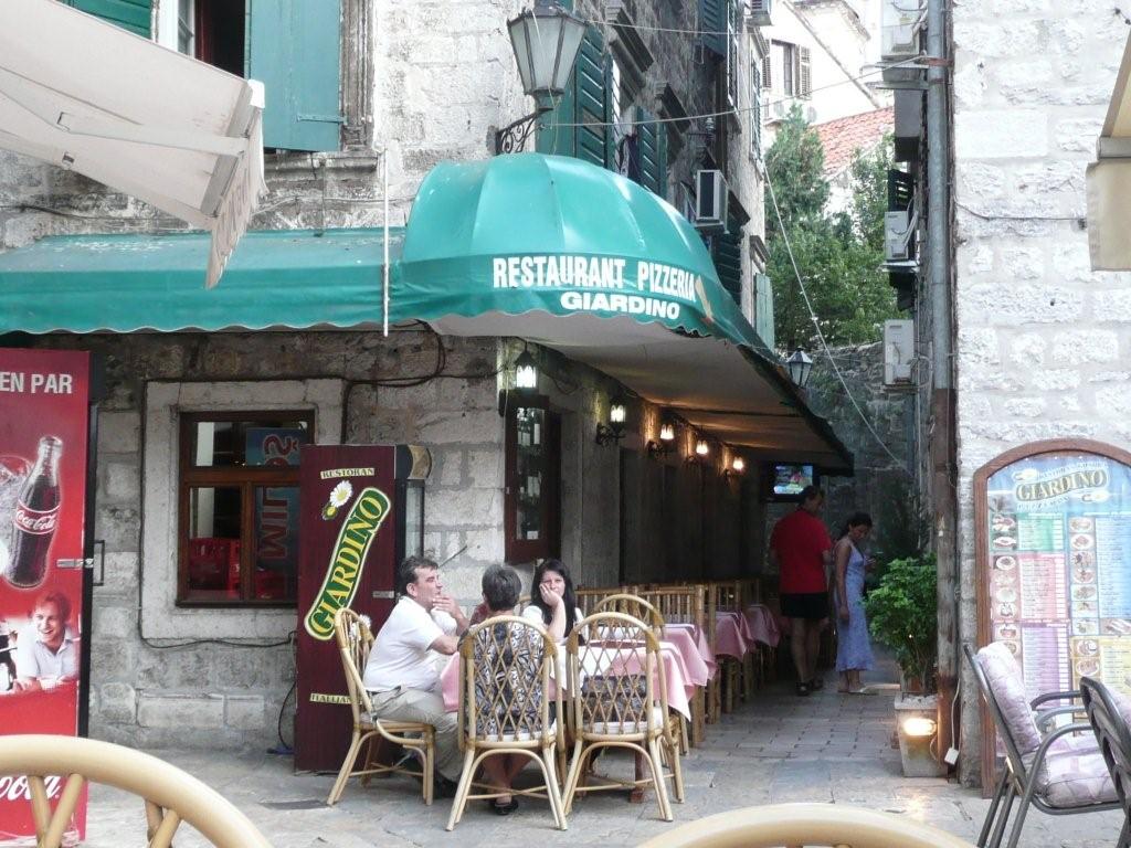 コトルの旧市街の中、広場(Pjaca od Muzeja)に面したレストラン。この広場に面していくつかレストランが有るが、ここでは海鮮系の他に、モンテネグロの肉料理メニューも用意されている。