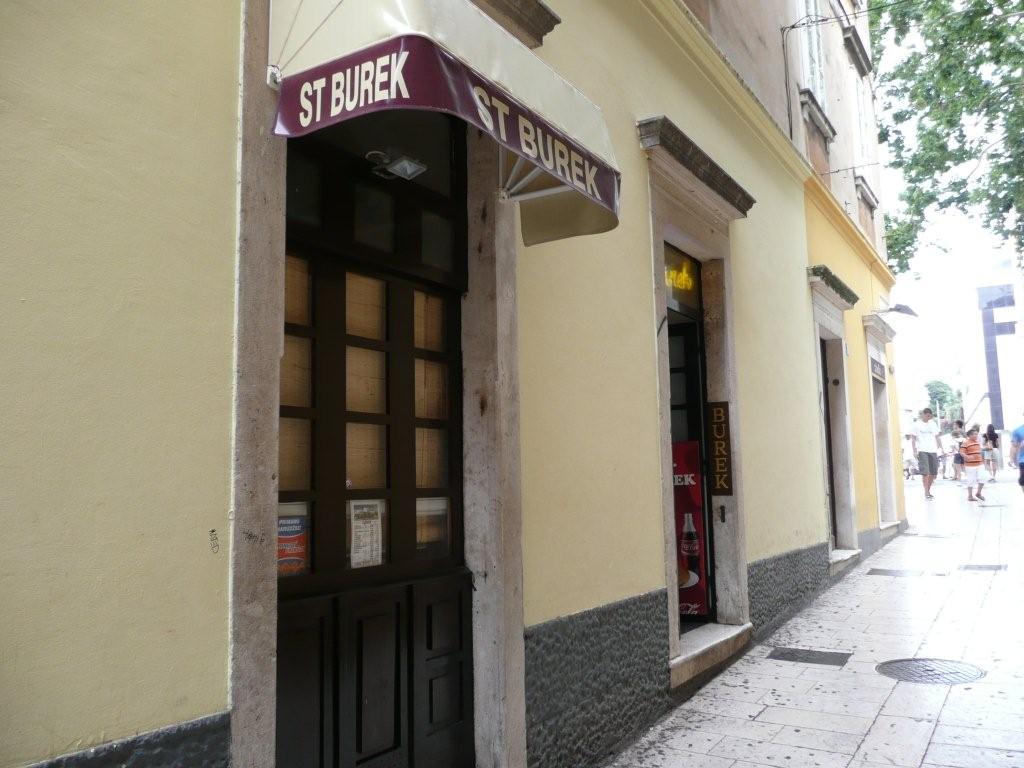 旧市街の外にあるSv.Duhの横を南北に走るDomaldova通り沿いにある小さなレストラン。屋根のホロにST Burekと書いているのが目印。ブレックは10Kn、ヨーグルトは4KN。大変お手ごろな価格。