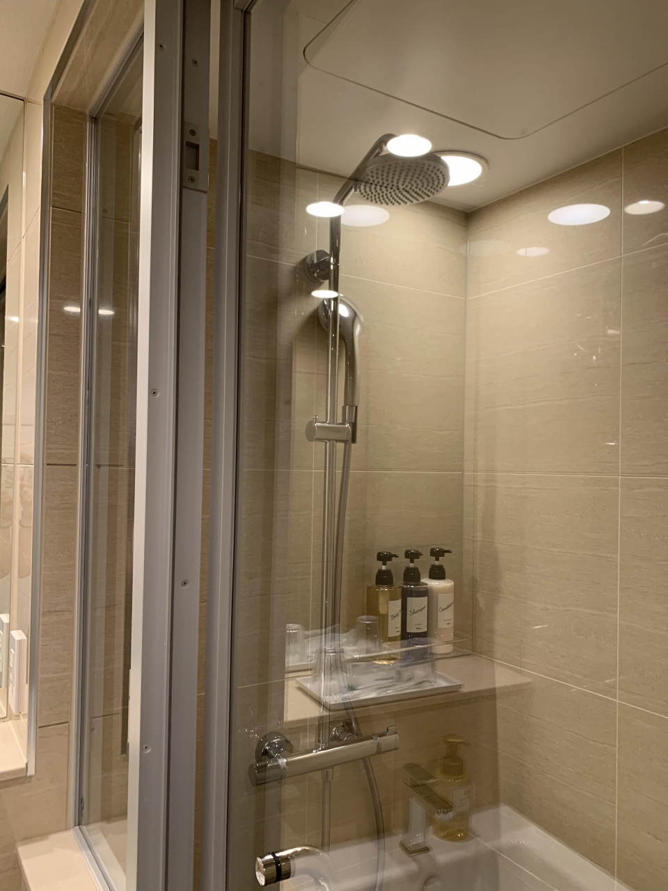 口コミ通りシャワールームのみで、固定式でしたが不便ありませんでした。