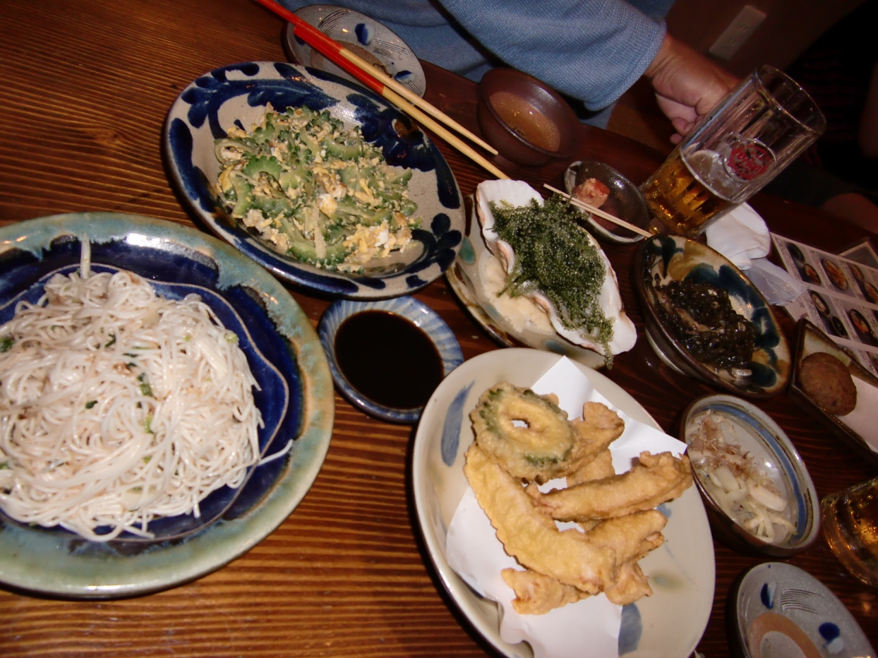 ソーメンチャンプルー、昆布イリチー、魚の天ぷら、海ぶどうなど
