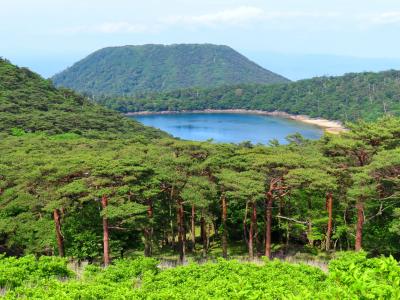 白紫池とともに見る韓国岳。この景色を見れば、これまでの疲れを忘れること...