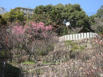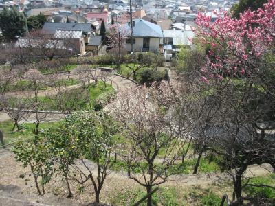 阪急電車神戸線の岡本駅から北北西に坂を登って行くと岡本梅林はある。公園の看板に「梅は岡本、桜は吉野、みかん紀ノ國、栗丹波」と唄われるほど昔から知られていたが1938年の阪神大水害、神戸大空襲や宅地化で梅林が失われていたのを地域住民の熱意により復活したとのことであった。約40品種、約200本の梅の木が植えられているそうである。