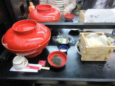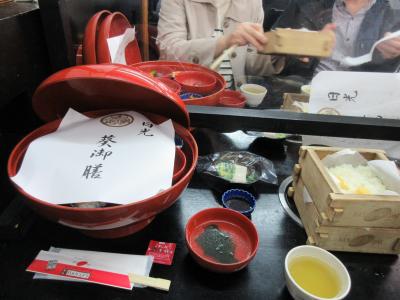 日光山輪王寺を拝観の後、ツアーの一行が徒歩で昼食予定の磐梯日光店を訪問した。昼食場所2階で昼食は「日光葵御膳」であった。昼食場所が狭いのか我々一行が多いためか少々窮屈な思いをしながら食事をした。味は良かった。食事の後1階の売店でクーポンを利用して土産物を購入して、3階の駐車場からバスに乗り込んだ。