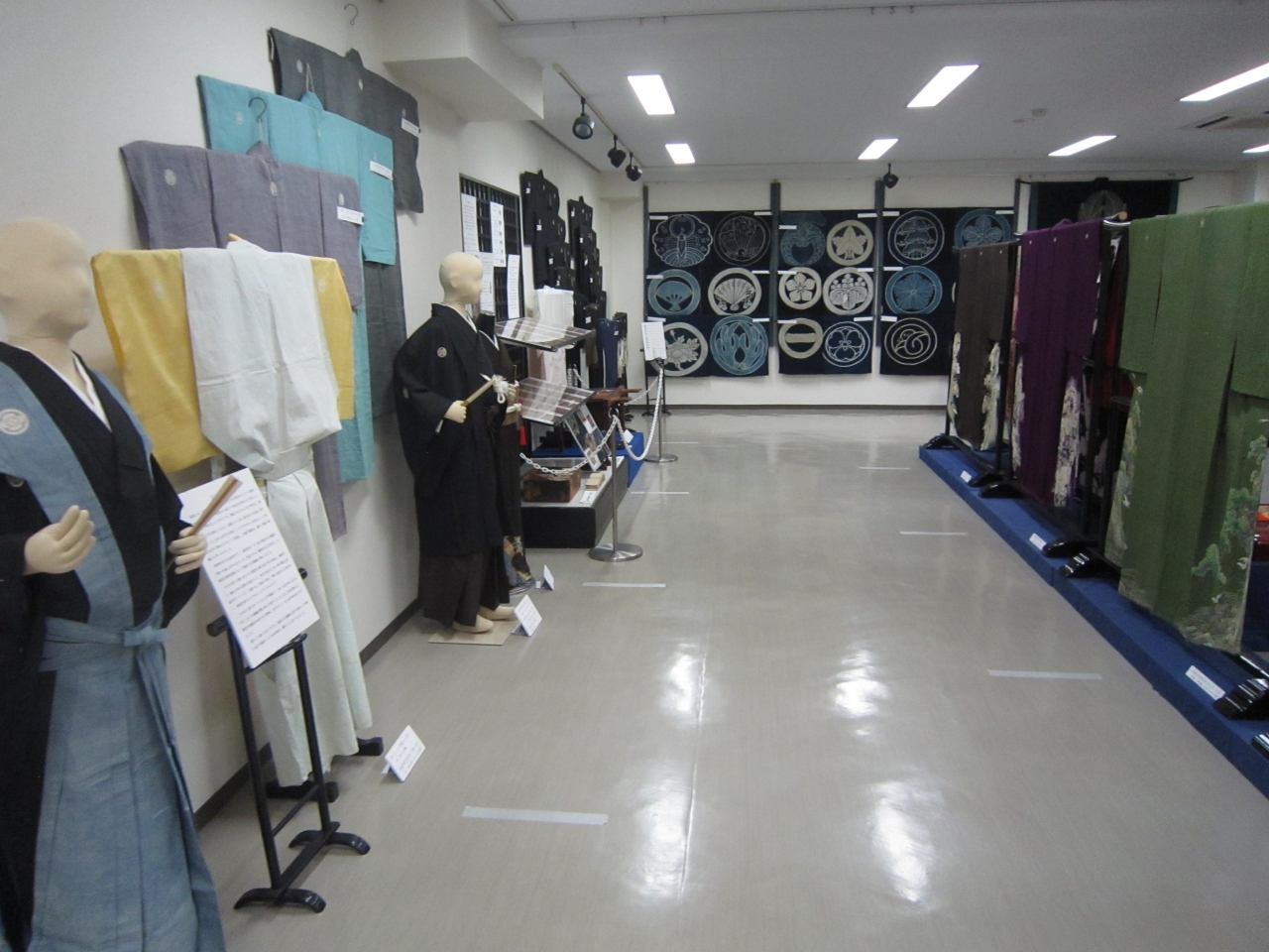 江戸時代後期から昭和40年頃までの丹波で着ていた着物を中心とした衣類の資料館。明智光秀の桔梗の家紋を始め多くの家紋の展示をしていました。また機織り機があり機織りの体験もできるそうですできるそうです。創作活動の発表として市内の子供が書いた多くの絵画が展示されていました。