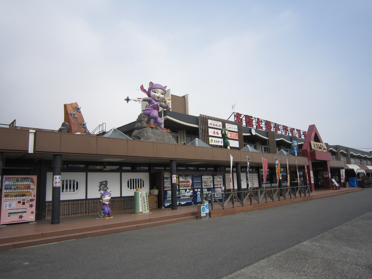伊勢参りの途中で昼食と帰りの休憩のために立ち寄った。昼食は雪隠れ鍋でツアーのために値段は不明。当ドライブインでは食事はもちろん伊賀上野や三重地方の赤福、伊勢うどん、松阪牛、忍者焼き、手裏剣ジェラード等いろんな物が販売されている。しかし私のお勧めは食べやすいよう壊すことができる木槌が付いた堅焼とおいしい天麩羅です。