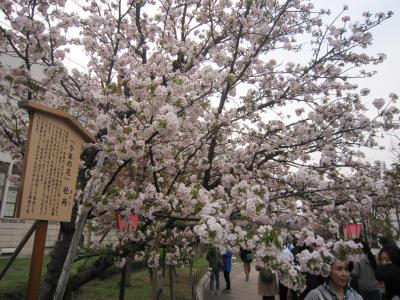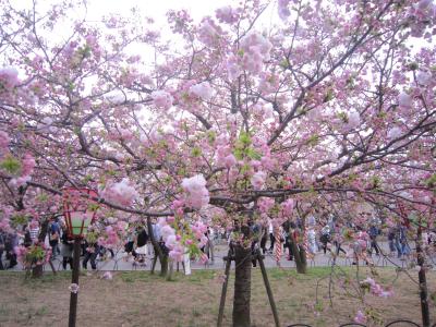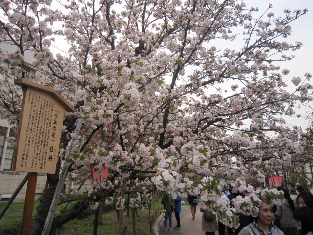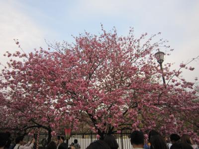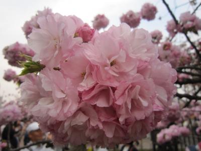 久しぶりに造幣局の通り抜けに行ってきた。大阪市の地下鉄「天満橋」を降りてから人の流れに従って約15分警察が整理をしているなか指示どおりに歩いて、多くの出店の間をぬって造幣局の門へ。多様な種類の桜が満開であったが中には蕾も。人出が多く撮影で止まらないようにという指示もあったが多くの人は携帯等での撮影をしていた。外国人が多いために場内放送も外国語で、外国へ来たような感じもした。
