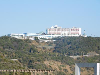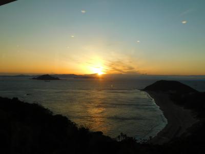 友人と4人で宿泊。海抜100mから見る風景は抜群。友人が一番風景がいい季節が2月頃であることから部屋を確保していただいた。夕日はホテルのロビー周辺で、また翌日の日の出は部屋の窓からも見ることができたがホテルの屋上の展望台で少し寒かったが見ることができた。温泉も7種類湯あみを楽しむことができ、夕食、朝食も十分楽しむことができた。