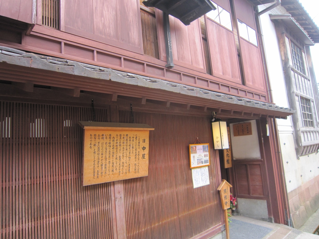 中村酒造?社長が取集された美術品を金沢市が寄贈を受け、美術館として新築したもので、茶道美術「器の楽しみ」の企画展示中であった。展示は食器・菓子器・酒器などが展示されていたが、感心したのは器に料理を載せた写真も合わせて展示していたことである。このために器に料理を持った際の全体のイメージが湧いてわかりやすく思った。また、館内の庭園眺められる休憩室で抹茶を有料で飲むこともできた。