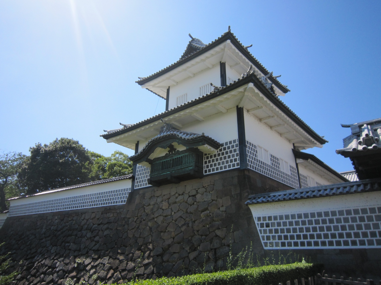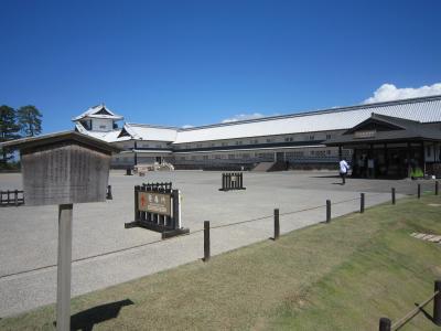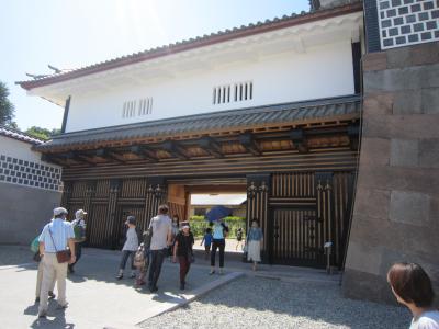 8月下旬の暑い日に宿泊地の香林坊から散策を兼ねて徒歩で兼六園を横切って石川門をくぐり金沢城公園へやってきました。多くの施設、河北門、橋爪門、五十間長屋などが復元されており広い城内をそれらを見ながら散策しました。途中で暑い最中埋蔵文化財を発掘調査が行われていました。また公園を経て、新しくて美しい玉泉院丸庭園で休憩した際に説明ボランテァの方に話しかけて庭園についての説明をしていただきました。