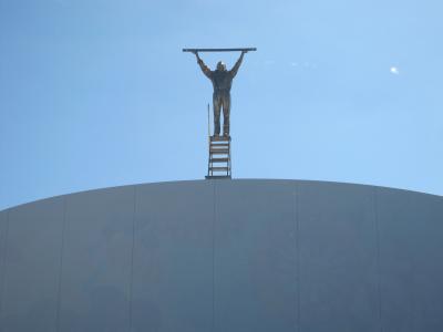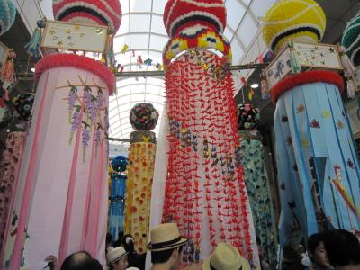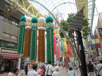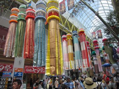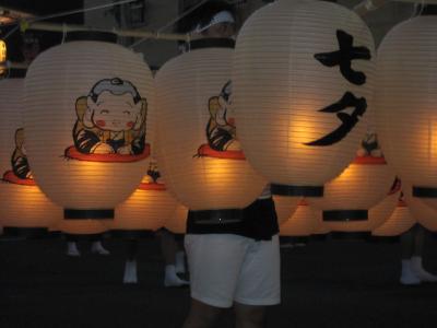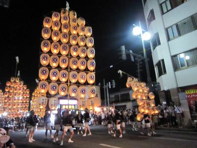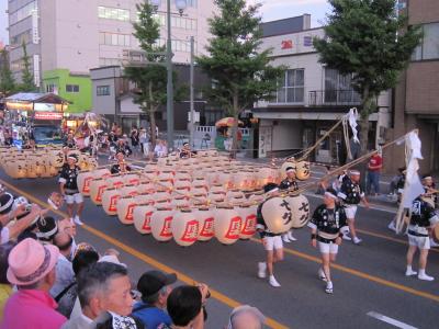 東北4大まつりの一つk秋田・竿燈まつり。仙台から観光バスで秋田まで、市内で早い夕食を食べ、18時ごろに会場の桟敷席へ、席が準備されるまでしばらく待ち、パレードの開始、竿燈を順次持って行進。竿燈まつりは、竿燈全体を稲穂に、連なる提灯を米俵に見立て、額・腰・肩などにのせ、豊作を祈るまつりであるとのことである。長さ12メートル、重さ50キログラム、46個の提灯を額・腰・肩などにのせるのであるが、幼稚園児に小さな規模の竿燈を与え踊りを教えているほおえましい光景もありました。竿燈まつりは 重要無形民俗文化財に指定されている。