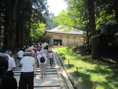 東北4大まつりの山形・花笠まつりへの途中に平泉から昼食のために立ち寄った。静かな山あいのバスで入るには厳しい道路もあたが運転手はスムーズに通行。昼食はおいしい黒毛和牛の肉や手打ちそば二八そば絶品であった。1時間ほどの滞在であったが静かな時間を過ごすことができた。