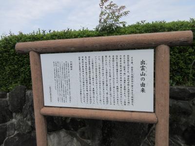 説明板によると「出雲の大国主命の娘である下照姫命は、出雲出立してこの地に着船され、この地の近くの倭文神社の社地に定住。住民に安産の指導をされていたが、ふさぎ込んだりしたときには少しでも出雲に近づこうとの想いからこの高台までに歩を運ぶと遠く出雲を望まれたそうです。この姿を見た人々は、いつしか出雲山と呼ぶようになった」という。現在は、展望台として整備されて東郷湖全体、羽合温泉等を一望することが出来る。