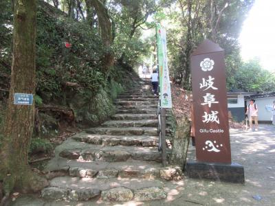 金華山の山麓に織田信長の居館があったとされており、入口に冠木門が立っている。石垣、遺構、礎石などがあり現在発掘調査がされている。山麓からロープウェイで山頂に上がりかなり石段を上ると岐阜城がある。城は標高329mの高さにある。城は資料館を兼ねており織田信長の座像や織田信長を中心とした展示であった。