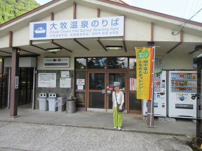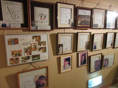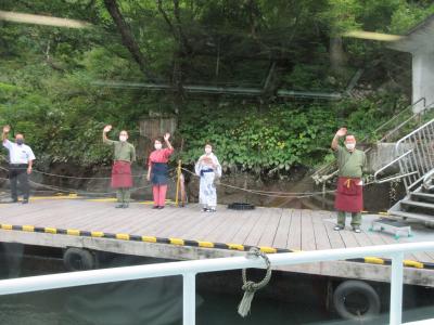 川原に露天風呂のある湯治場がダムが出来て水没したために現在地に新築して「大牧温泉観光旅館」として営業を再開したとのことです。テレビのサスペンスドラマの舞台として取り上げられて「船でしか行けない秘境の一軒宿」として人気旅館となったためか旅館の中にはドラマに出演した多くの俳優の色紙が廊下に飾られていた。乗下船の際には船着場で旅館の従業員による歓送迎があった。