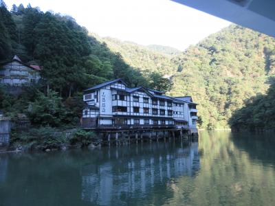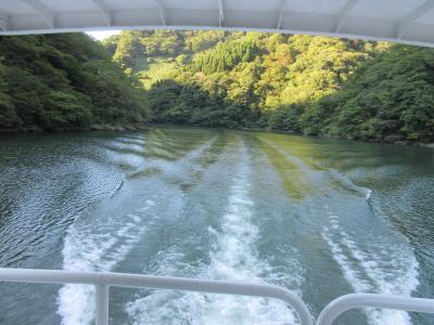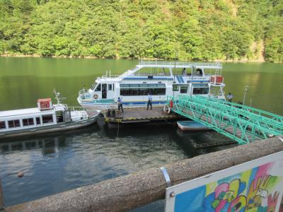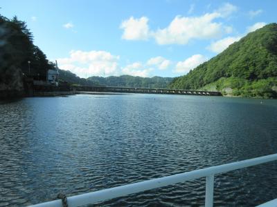 遊覧船と名が付いているが実質的には大牧温泉旅館の送迎船の様に思えた。波のない静かなダム湖を主にこの地方の民謡を流して大牧温泉までの往復で、大牧温泉に着くとダム側から旅館がよく見えるように大回りしてくれたので写真を撮ることがた。