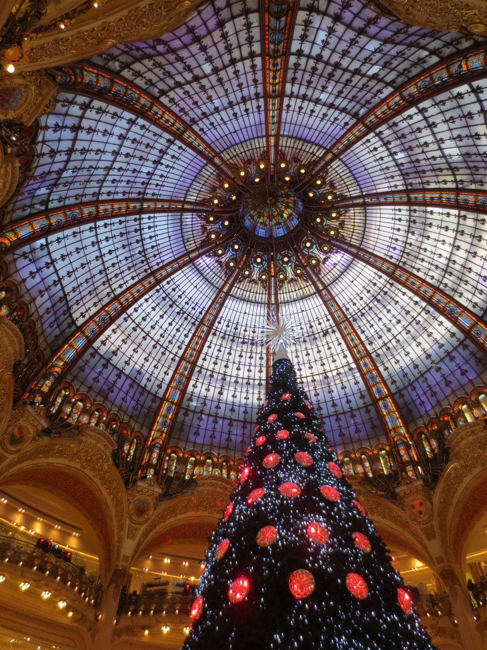 でも有名な吹き抜けのステンドグラスのドーム、エッフェル塔も見える展望フロア、地下1階の広い靴売り場など見どころは多いと思います。