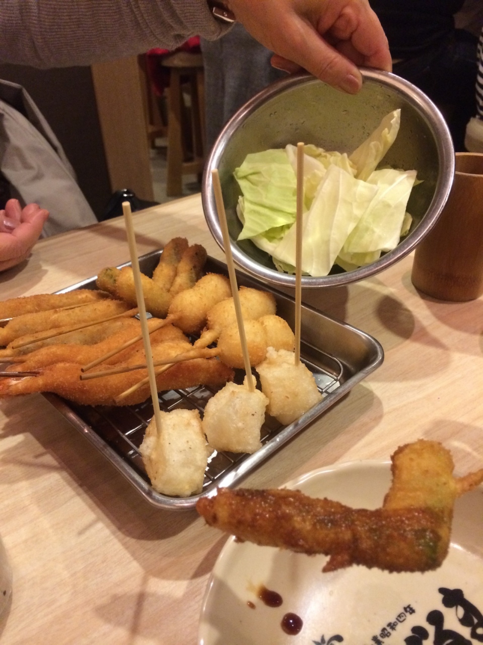 大阪駅のルクアにあり便利でした。店内は狭いけれどきれいで、3人で行きましたが4人がけのテーブルにとおしてもらいました。女性が好きそうな串と枝豆などのスピードメニューかアイスかを選べるレディースセットをオーダーしました。アイスにしましたが意外としっかりしたジェラートでした。串は衣のキメが細かく、さくさくでとても美味しかったです。