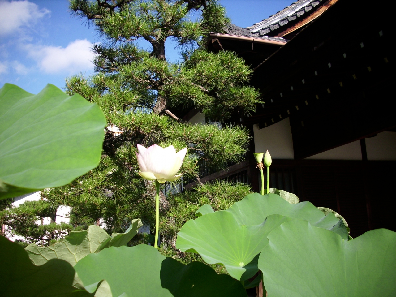 境内にはハスの花が至る所に咲いていました。