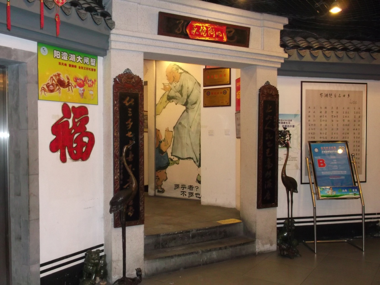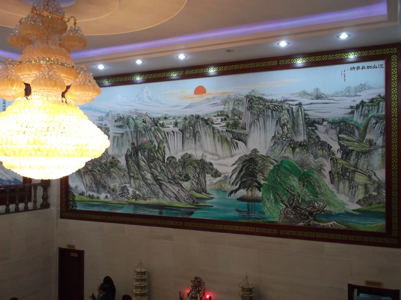 広東料理の巨大なレストランで、1階のフロアは民芸品や