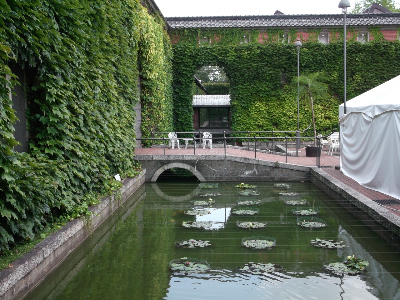 中庭の池には”モネ”の「蓮」の作品が模して