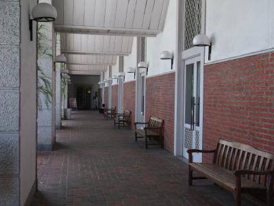 ホテルの中庭も洋風で、しばしベンチでゆっくり景色を