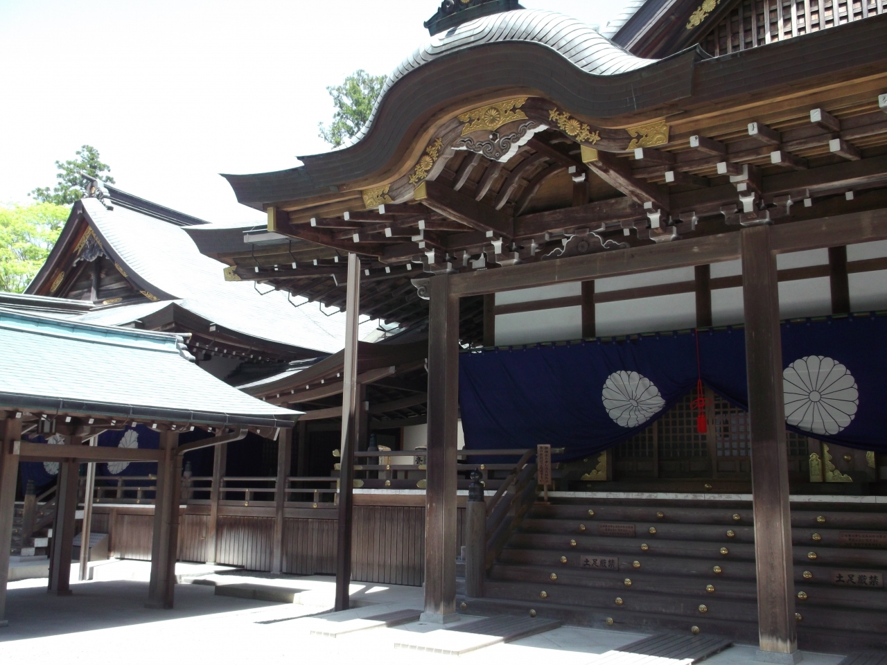 朝日山の裾野に神社建築では日本最古の本殿を持つ神社、