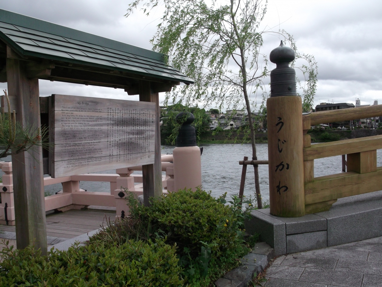 宇治川の宇治橋を渡ると源氏物語の「宇治十帖」を