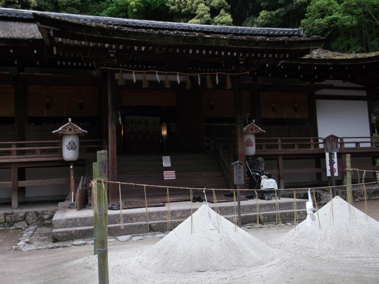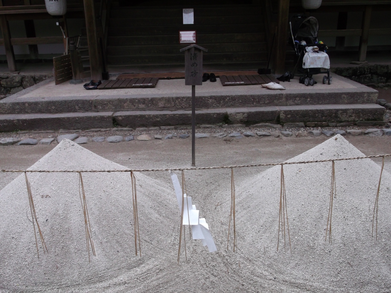 拝殿の前には上賀茂神社と同様に「清め砂」三角錐の
