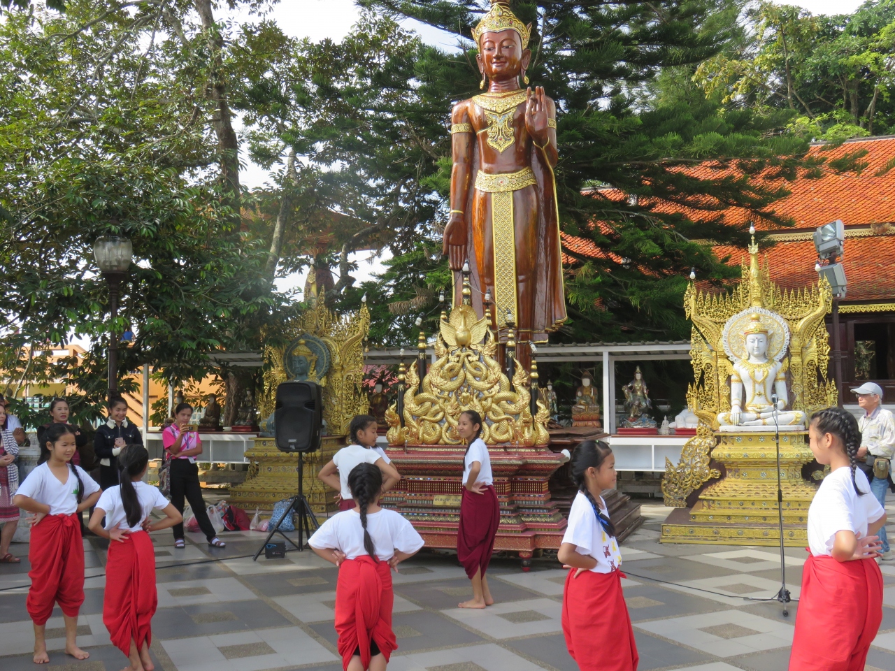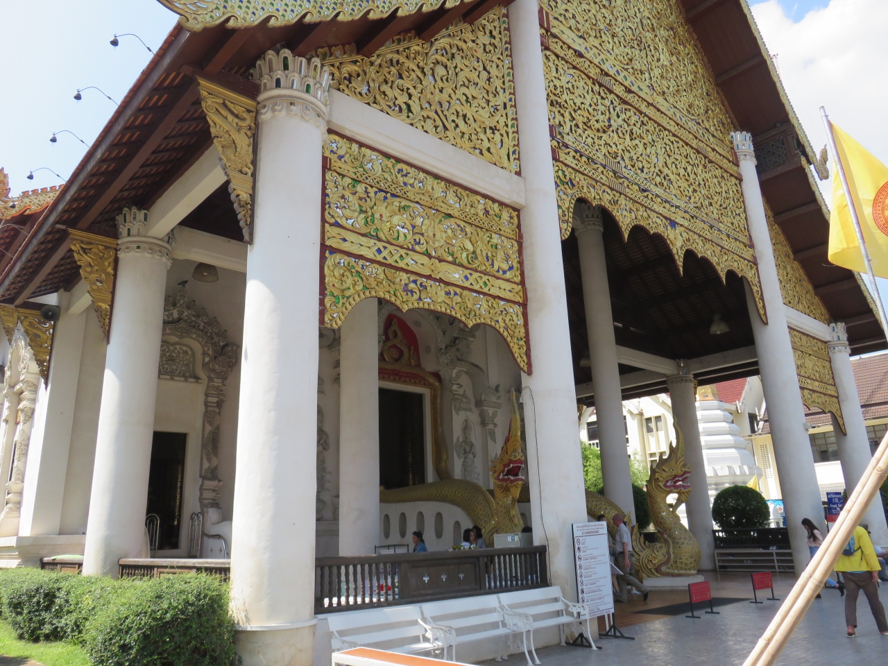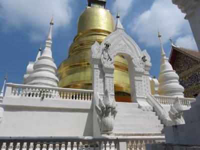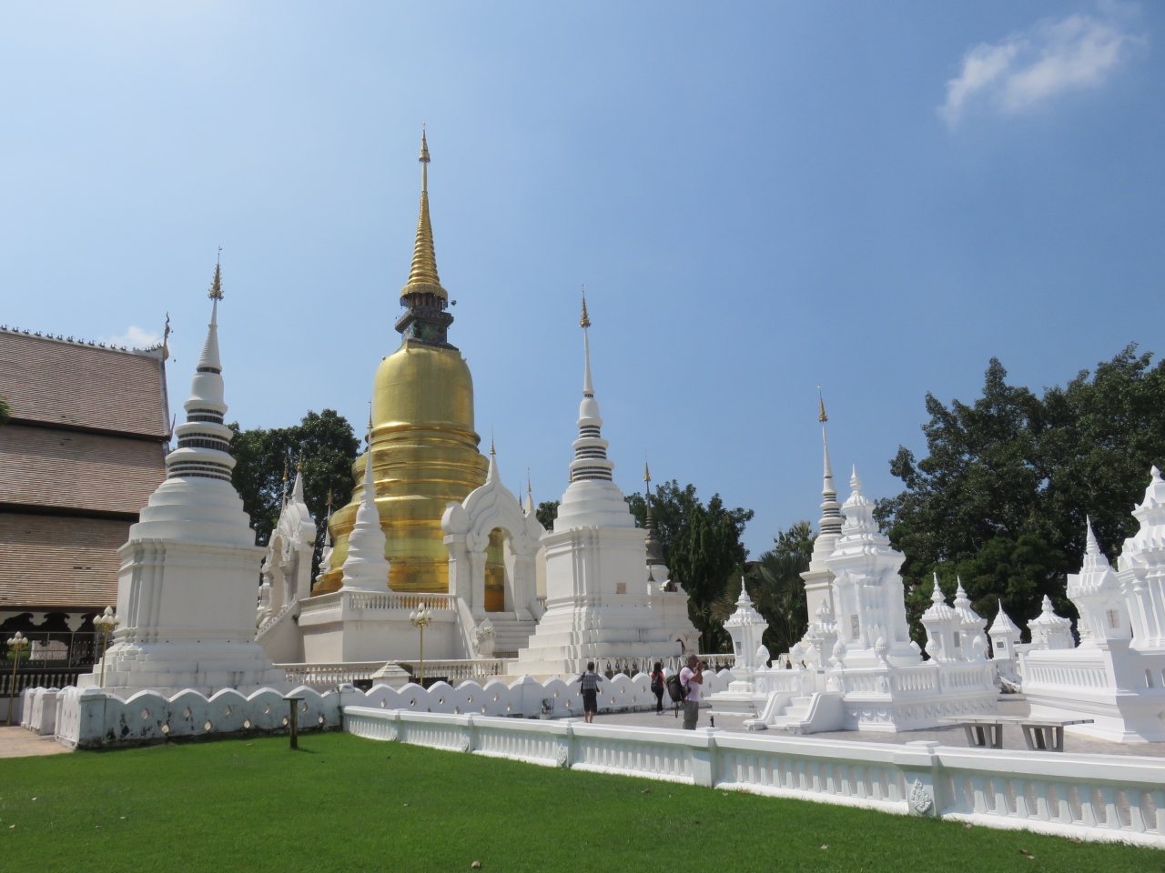14世紀に6代目クーナ―王がランナー王家の庭に建てた”花園”と言う名の寺院だそうです。チェンマイの歴代の王の遺灰が納められている白い仏塔がとても印象的でした。