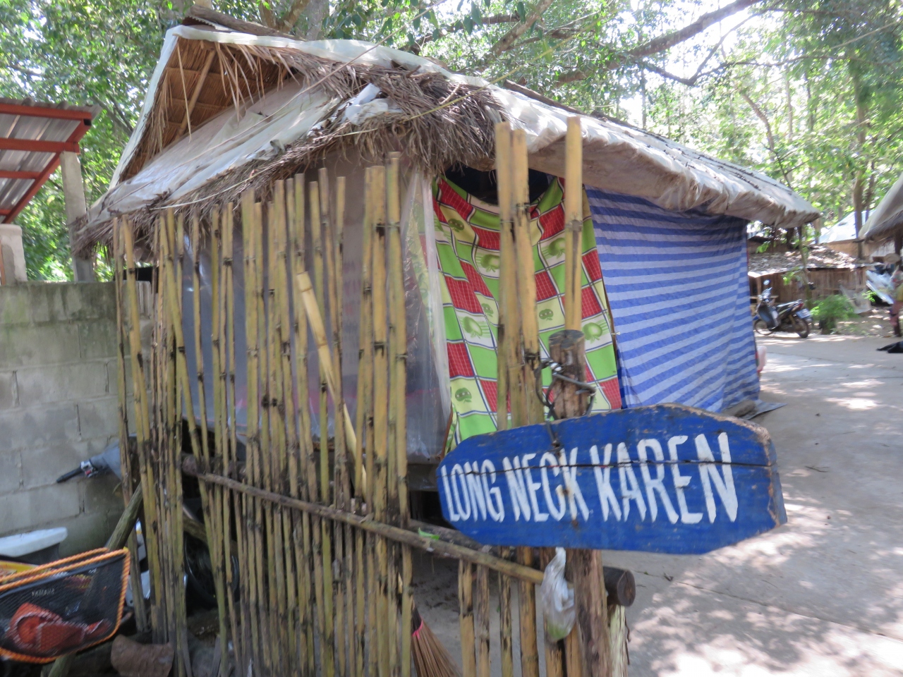 お土産屋さんでは子供や数人の女性が民族衣装で店番をしていましたが、首に真鍮の輪を