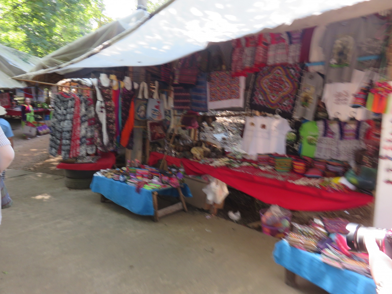 村の入口付近には首長族の住居が点在していて、細い道の両側にはお土産屋さんが