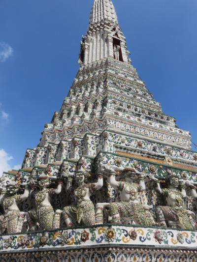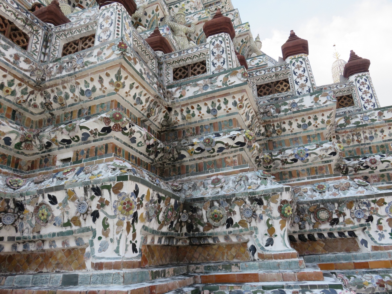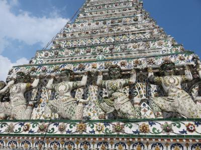 この仏塔を飾っているタイルは150年以上前のラーマ3世の時代に大改修されたようです。クメール様式の仏塔は装飾も含めカラフルな色彩で、とても奇麗でした。- 旅行時期