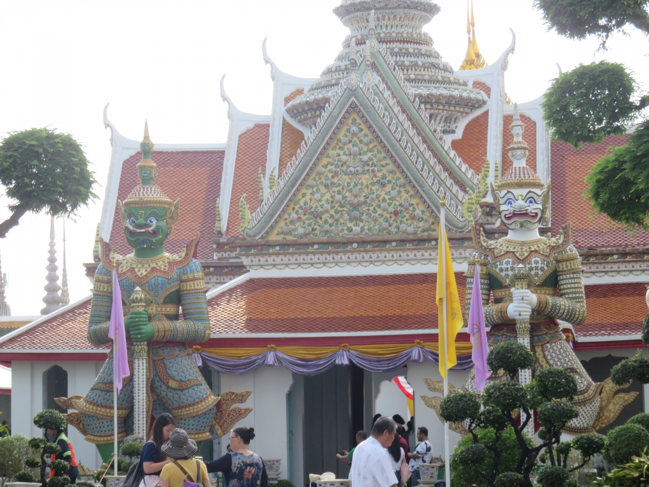 ワット・アルンでは大仏塔が目を引きますが、本堂の入口には巨大な2体のヤック像が睨みを利かせていました。