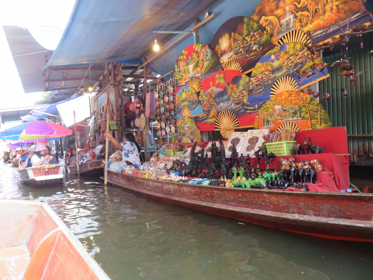 王宮側から桟橋に向かう途中には、通路の両側にはお土産屋さんが連なっていて、