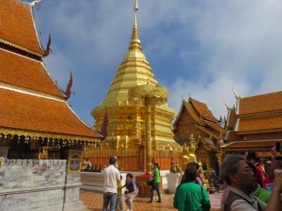チェンマイの街を見下ろすドイ・ステープの山頂にあるお寺で、本堂に向かう時は長い階段はパスしてケーブルカーで登りました。