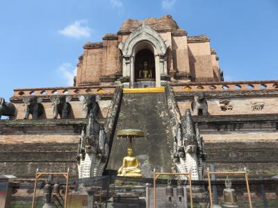 チェンマイの市街地のほぼ中央にある寺院で、巨大な仏塔と言う名の寺院でした。