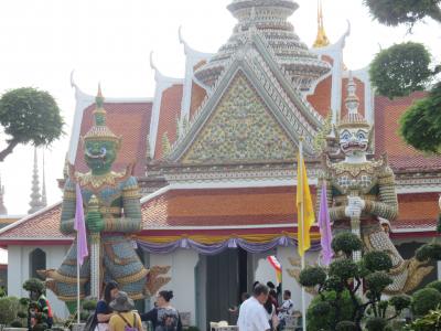 この本堂はラーマ2世が創建したそうで、本堂を囲む回廊には120体の仏像が並び、本堂の壁にはお釈迦様の生涯が描かれていました。装飾や色彩がとても奇麗でした。- 旅行時期