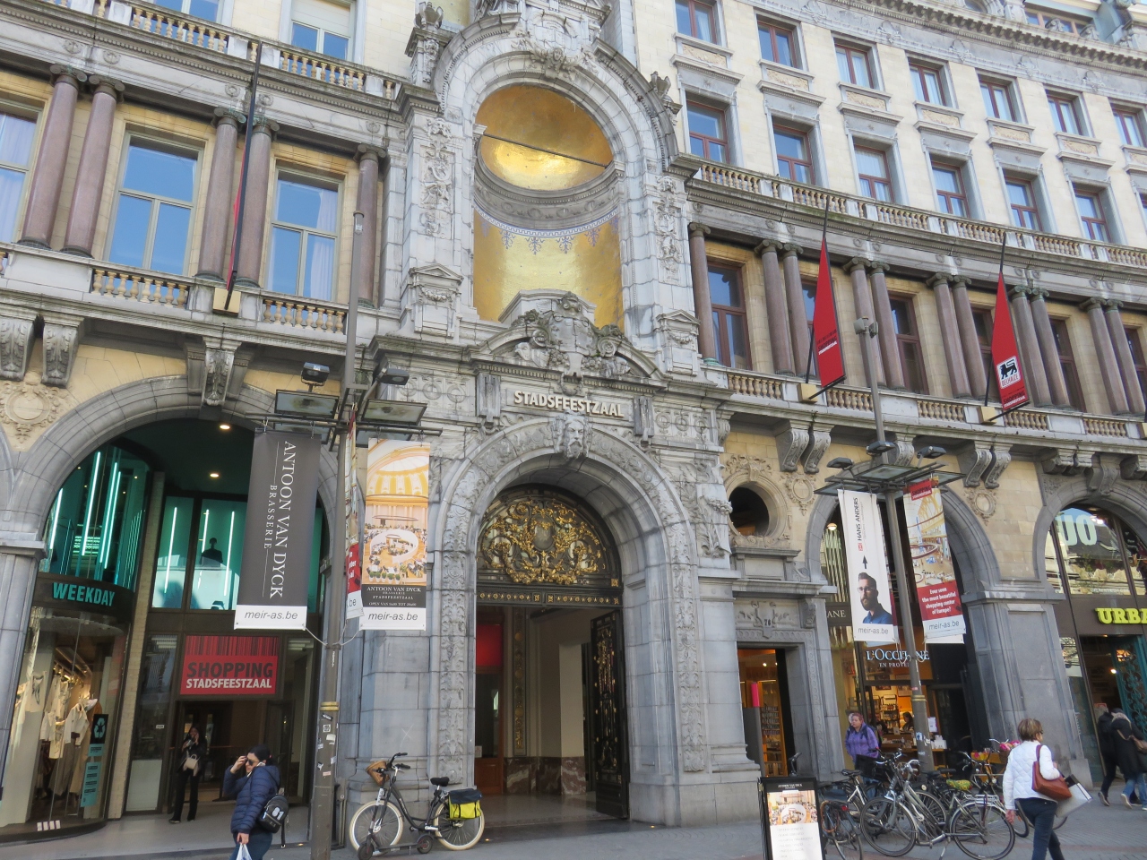 アントワープのショッピング通りとして知られるメールに1908年にイベント用ホールとして、新古典様式で建てられたようですが、現在はショッピングモールのように感じられました。建物の中にはブランドショップなどの店が並んでいました。