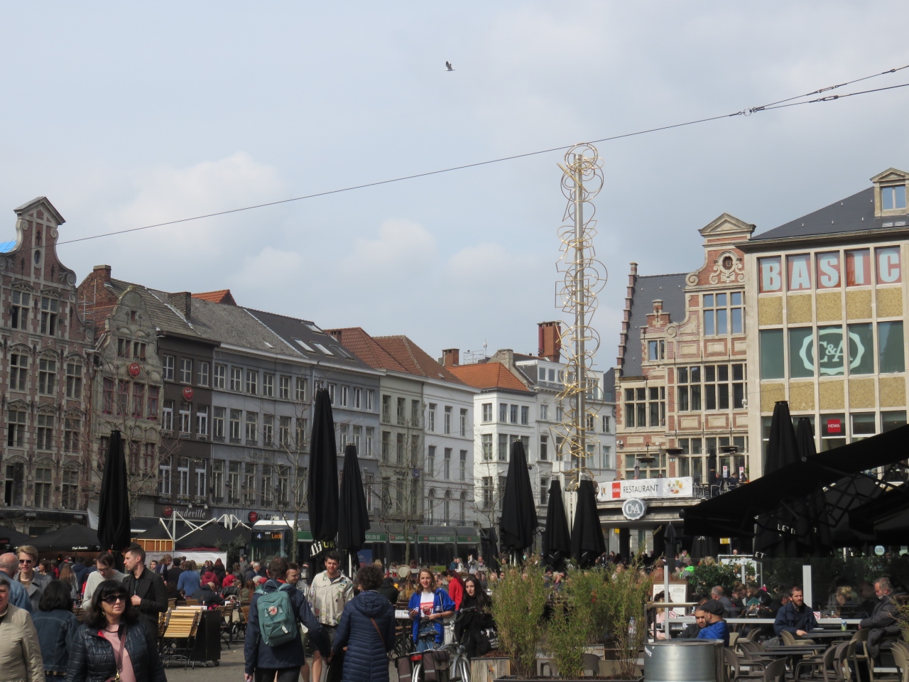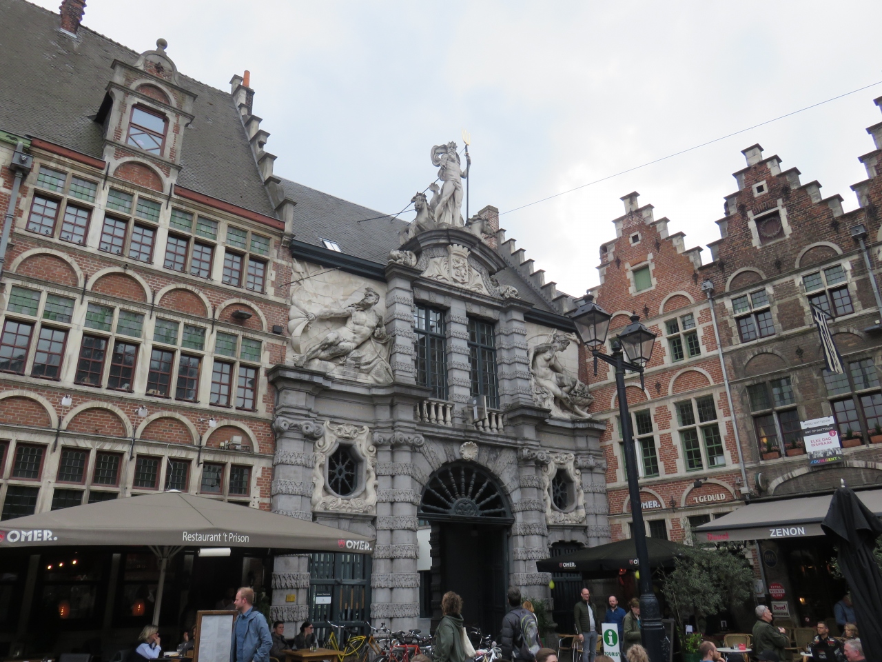 ゲント・セント・ピータース駅がある新市街から旧市街地への入口に当たる広場だと思います。この辺りが旧市街地の中心地にあたり、広場の東側には鐘楼と繊維ホールや市庁舎などの歴史的建造物が集まっていました。また、西側にはレイエ川があり古き時代の原風景もありました。