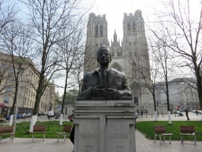 聖ミッシェル・聖ギュデュル大聖堂の通称名をサン・ミッシェル大聖堂と言いますが、そのファザード前に広がる公園になります。2本の塔が印象的な教会なので、その全景を見るにはこの公園まで来ないと見られませんでした。