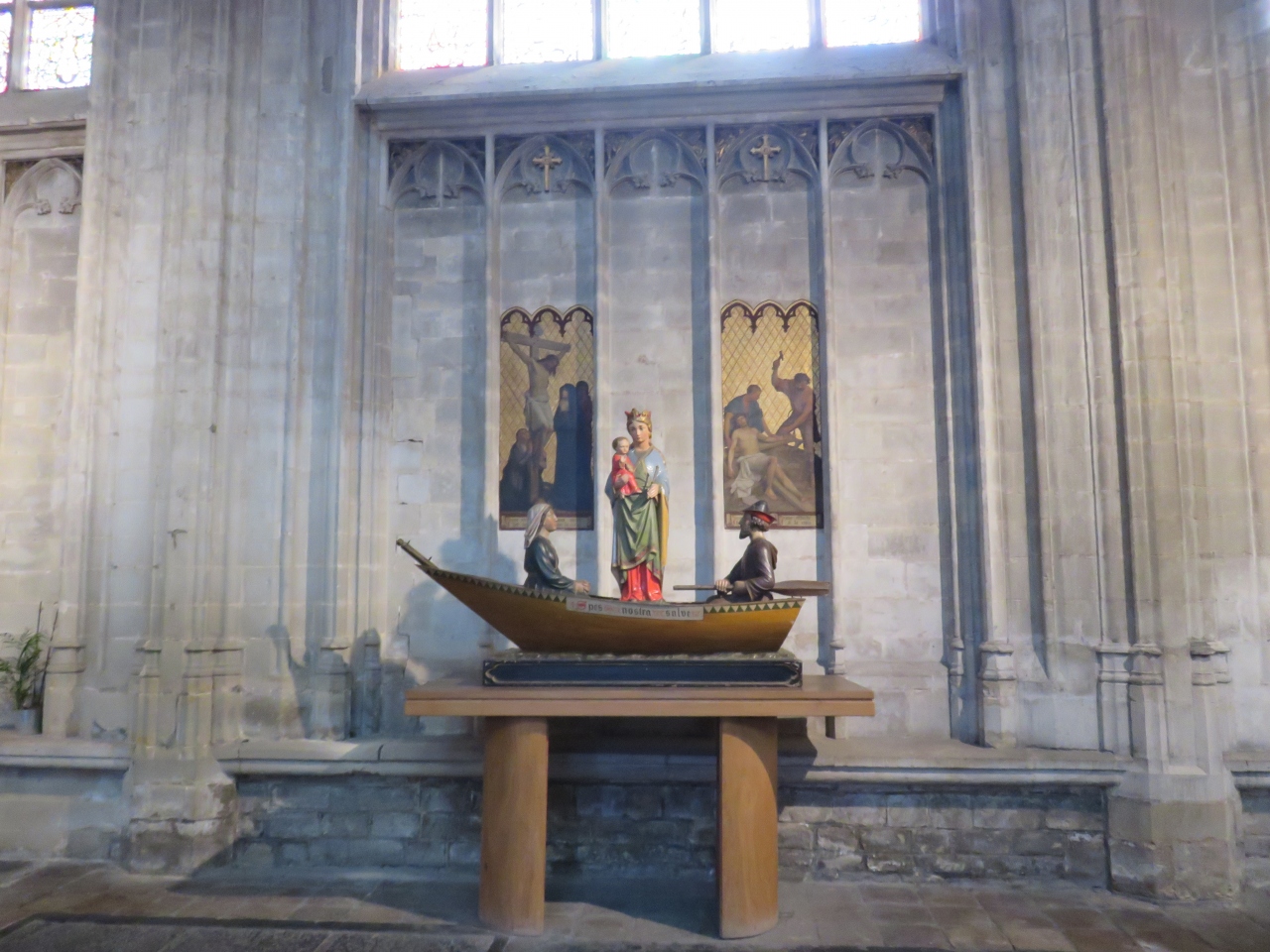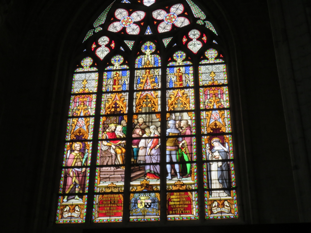 ゴシック様式の美しい教会でした。1304年にギルドの手で小さな礼拝堂が建てられたのが最初で、天使のお告げに従いマリア像を船でブリュッセルまで運びギルドに捧げたという言い伝えでした。この教会もステンドグラスがとても奇麗で印象的でした。
