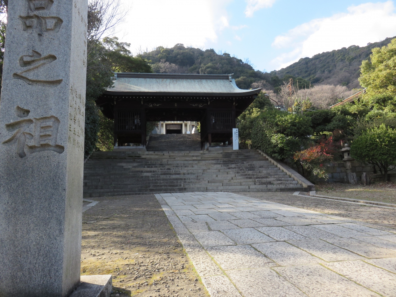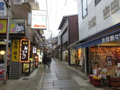 参道の両脇には、たくさんの土産物店やうどん店などが立ち並び、石段の113段目には、「一之坂鳥居」が現われてきます。一之坂鳥居の先は、「一之坂」と呼ばれる急勾配で、高松藩初代藩主となった松平頼重から寄進された二層入母屋造・瓦葺の「大門」があります。