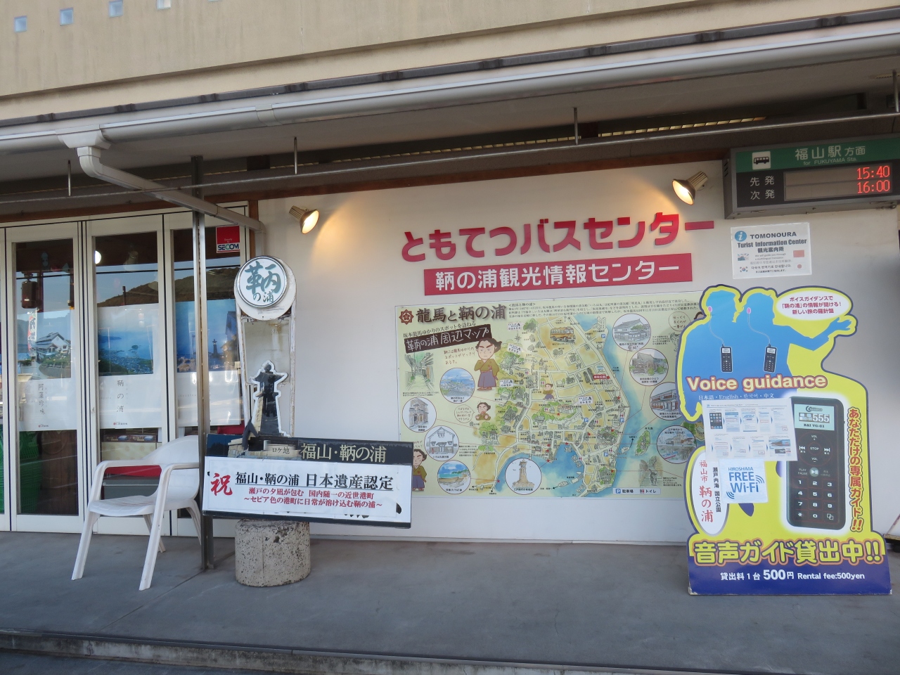 鞆の浦の交通と観光の中心的なスポットで、バスで鞆の浦にアクセスする場合には、この場所が停留所になります。また、車でアクセスする場合でも、駐車場も併設してあるため便利です。交通や観光情報だけではなくお土産や軽食なども販売されており、鞆の浦名物のちくわや、海鮮の揚げ物、保命酒なども手に入りました。