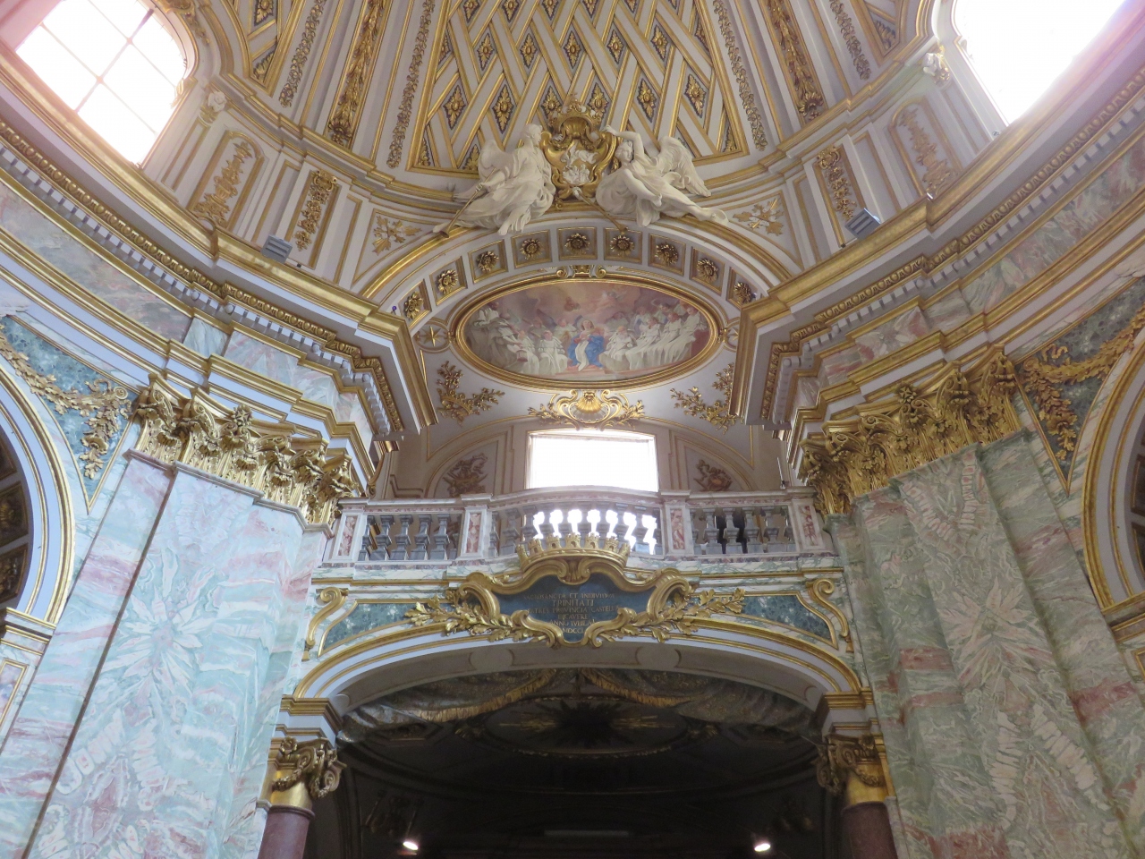 18世紀にバロック様式で造られて堂内は色大理石で美しく後陣や身廊の天井も豪華で、素晴らしいものでした。さほど大きくない教会ですが、立ち寄って良かったと感じました。- 旅行時期